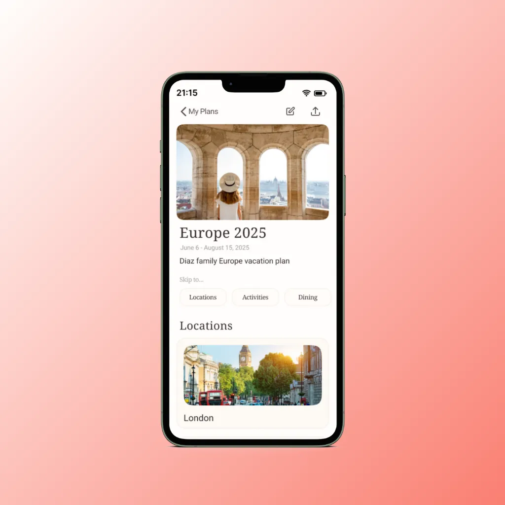 Brand identity and app development for sharing and organizing travel, meals, and trips.